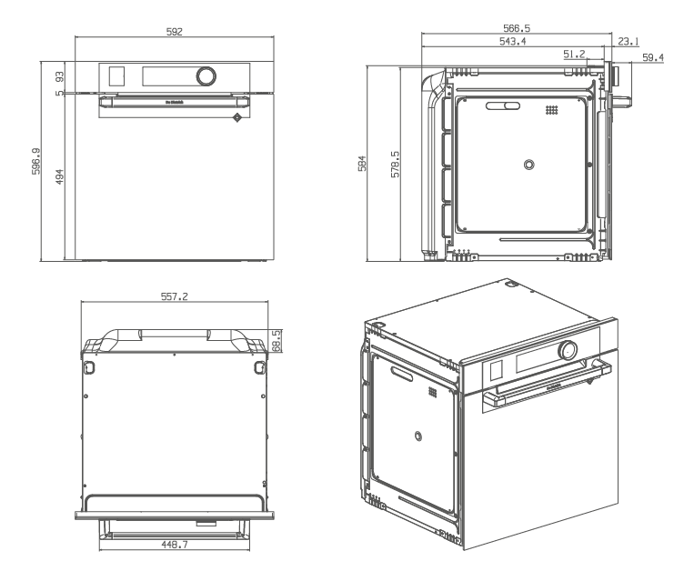 Размеры для встраивания (мм): В 585 х Ш 560 х Г 550