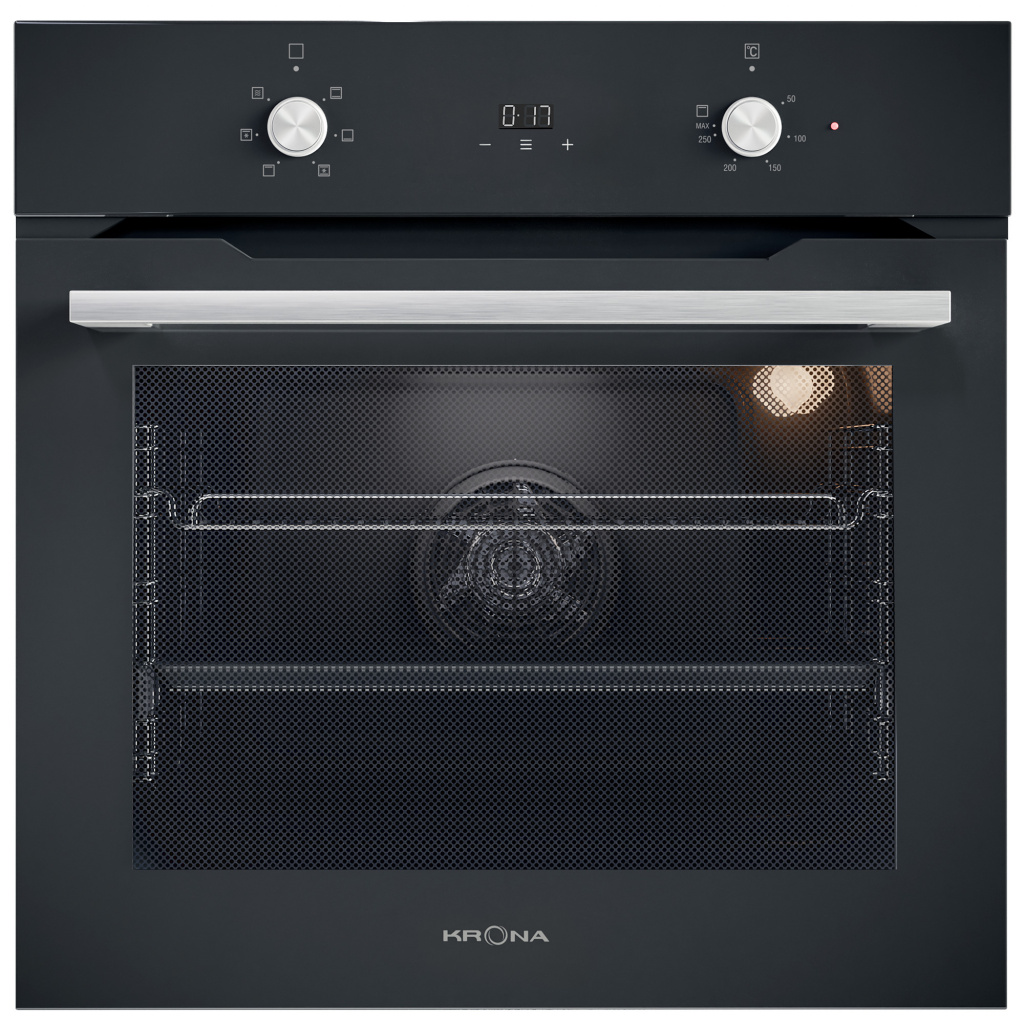 Духовой шкаф TESORO шириной встраивания 60 см выполнен в современном стиле из черного закаленного стекла. В модели предусмотрены 5 уровней приготовления и полезный объем 66 л, которые позволяют готовить несколько блюд на разных уровнях одновременно. Духовой шкаф оснащен 6 режимами работы, конвекцией, электрическим грилем, а также программой предварительного нагрева, с помощью которой появилась возможность экономить время и электроэнергию на разогреве духовки. Удобство эксплуатации обеспечивают телескопические направляющие, благодаря которым следить за процессом приготовления проще и безопасней, каталитическая система очистки, а также неприхотливые в уходе регуляторы с утапливаемым механизмом. Остекление дверцы модели TESORO предусматривает усиленную теплоизоляцию LOW-E, которая предотвращает нагревание дверцы во время приготовления, а также утечку тепла из камеры духового шкафа.