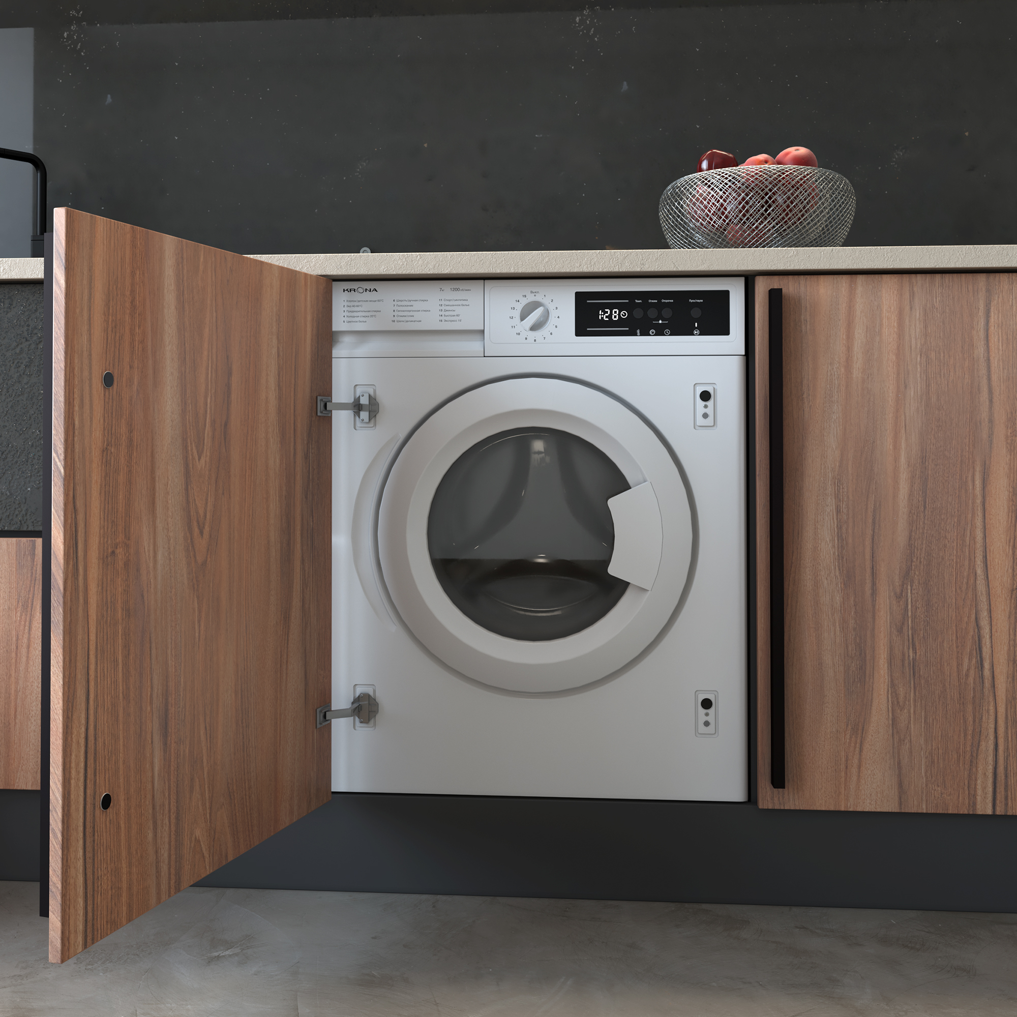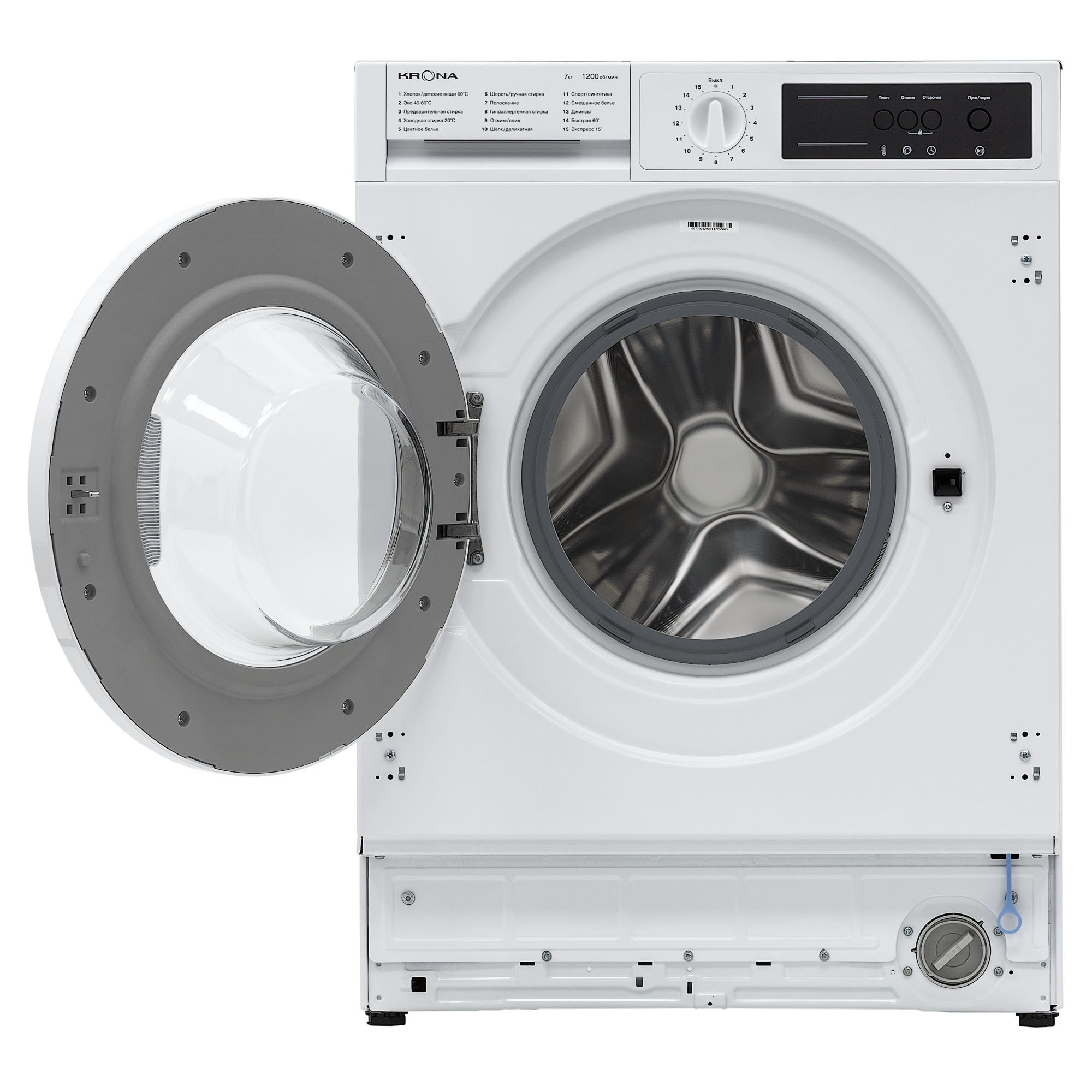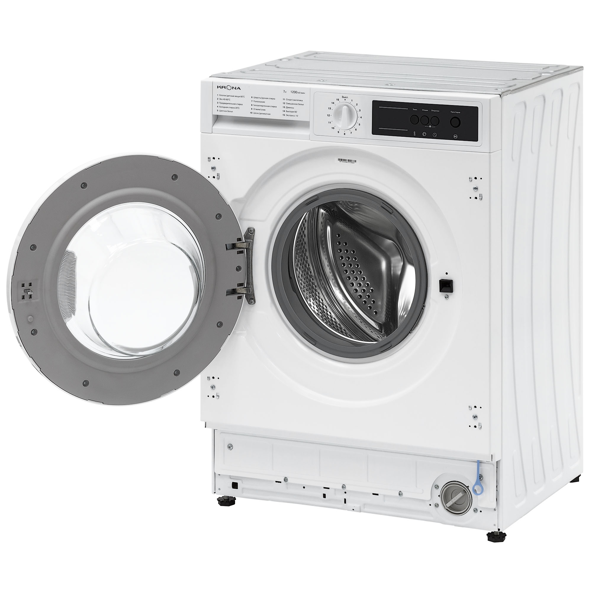 Встраиваемая стиральная машина KAYA объемом загрузки 7 кг оснащена 15 программами стирки для разных типов белья. Модель предусматривает настройку скорости отжима до 1200 об/мин, а также регулировку температур стирки в диапазоне 20-90 °С. Для вашего удобства в модели предусмотрена функция паузы и отложенный старт на 1-24 часа. Безопасность пользователя обеспечивают такие функции как: блокировка управления от детей, электронная защита от перелива и протечек, контроль пенообразования. Стиральная машина KAYA отличается высоким классом энергоэффективности А++, благодаря которому годовое потребление электроэнергии составляет всего 99 кВт.