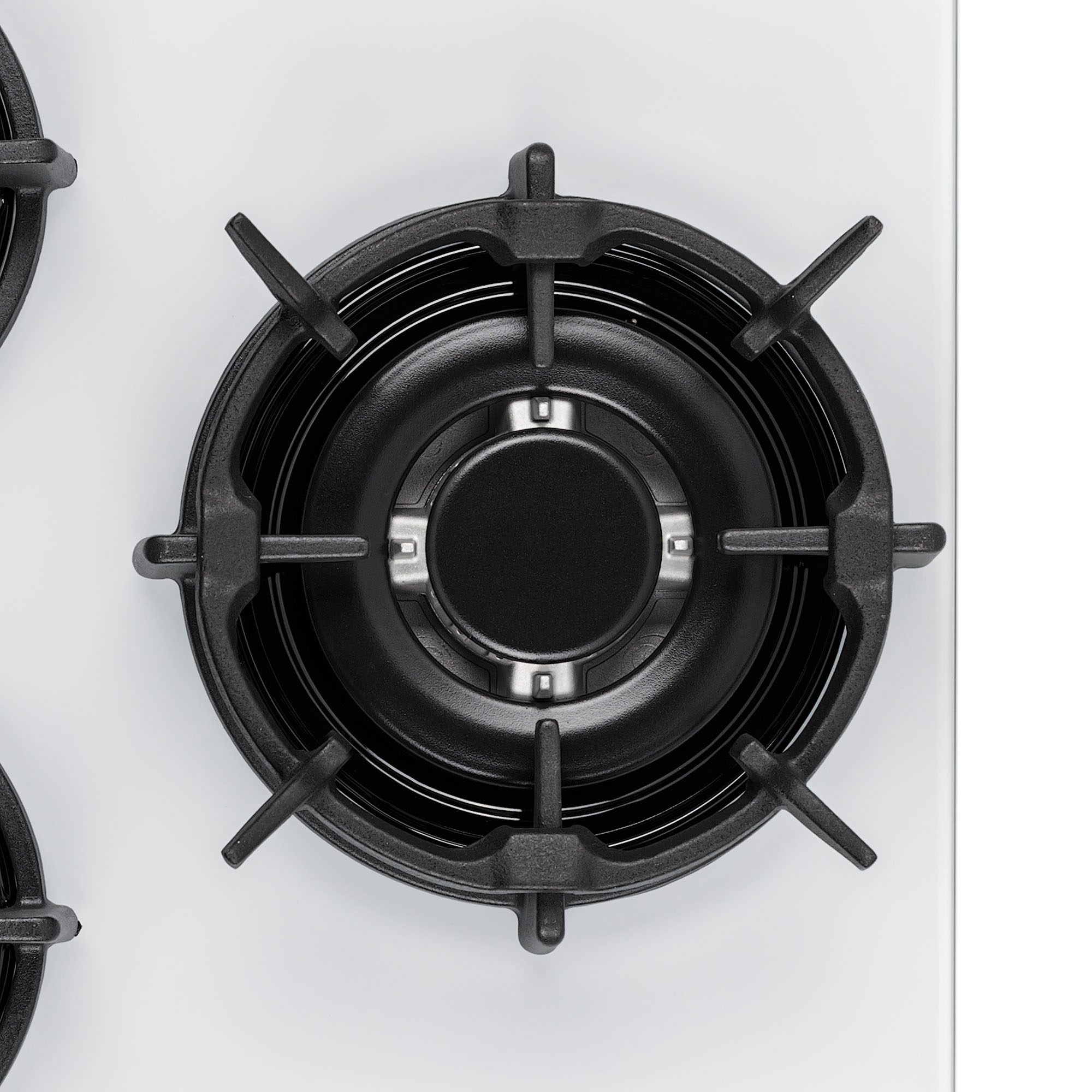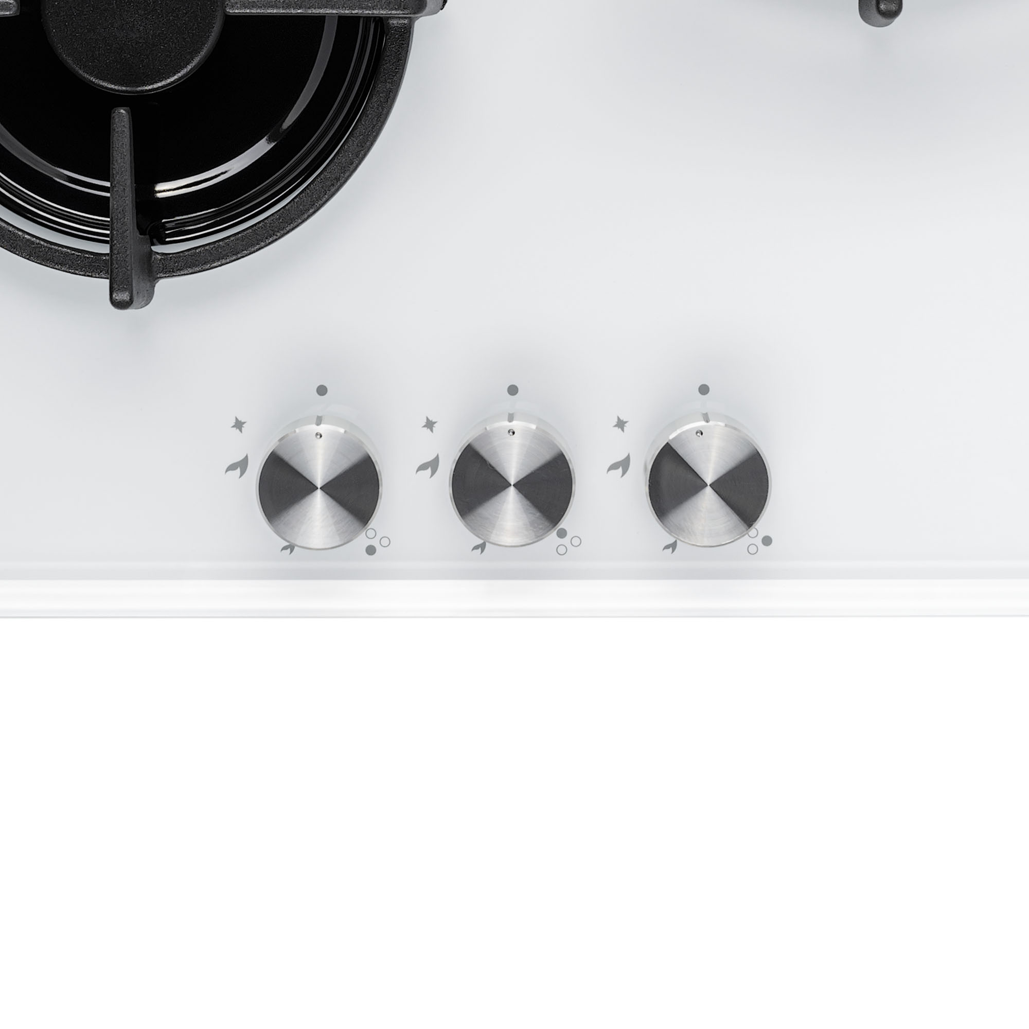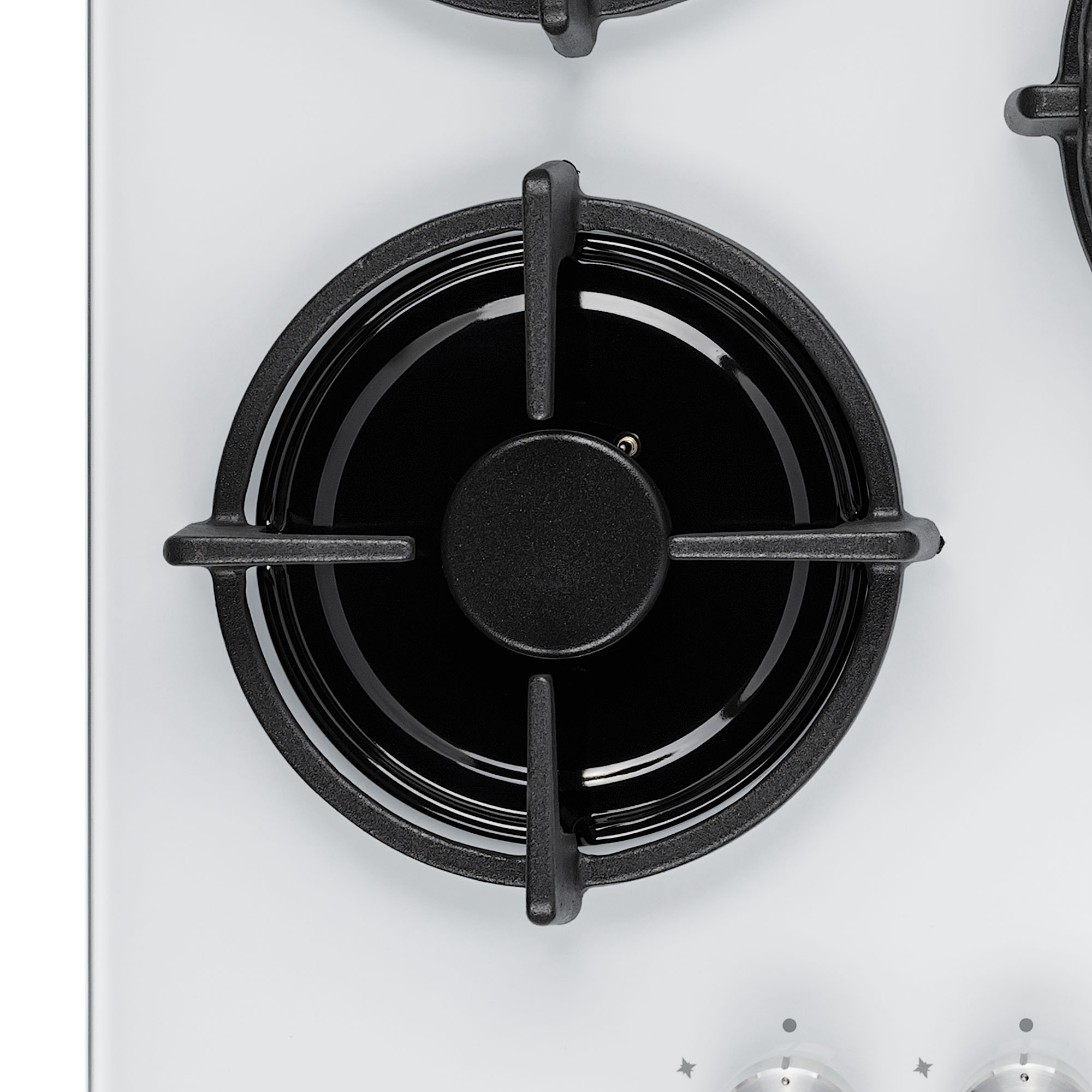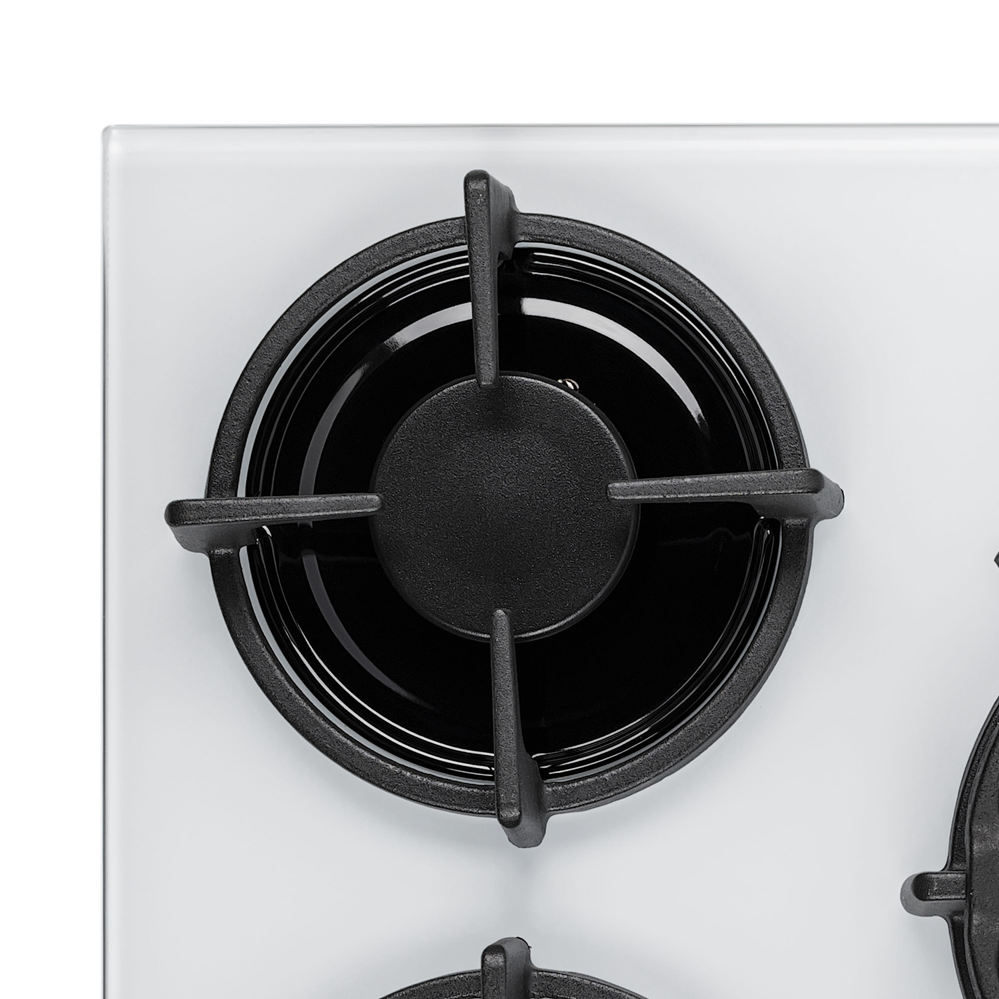 Дизайн модели FIERO на 45 см выполнен в белом цвете из термостойкого закаленного стекла толщиной 8 мм, что гарантирует безопасность эксплуатации. Газовая варочная поверхность предусматривает функцию газ-контроля и экспресс-конфорку с тройным пламенем. Приятным дополнением является адаптер для посуды со сферическим дном, который входит в комплект поставки.