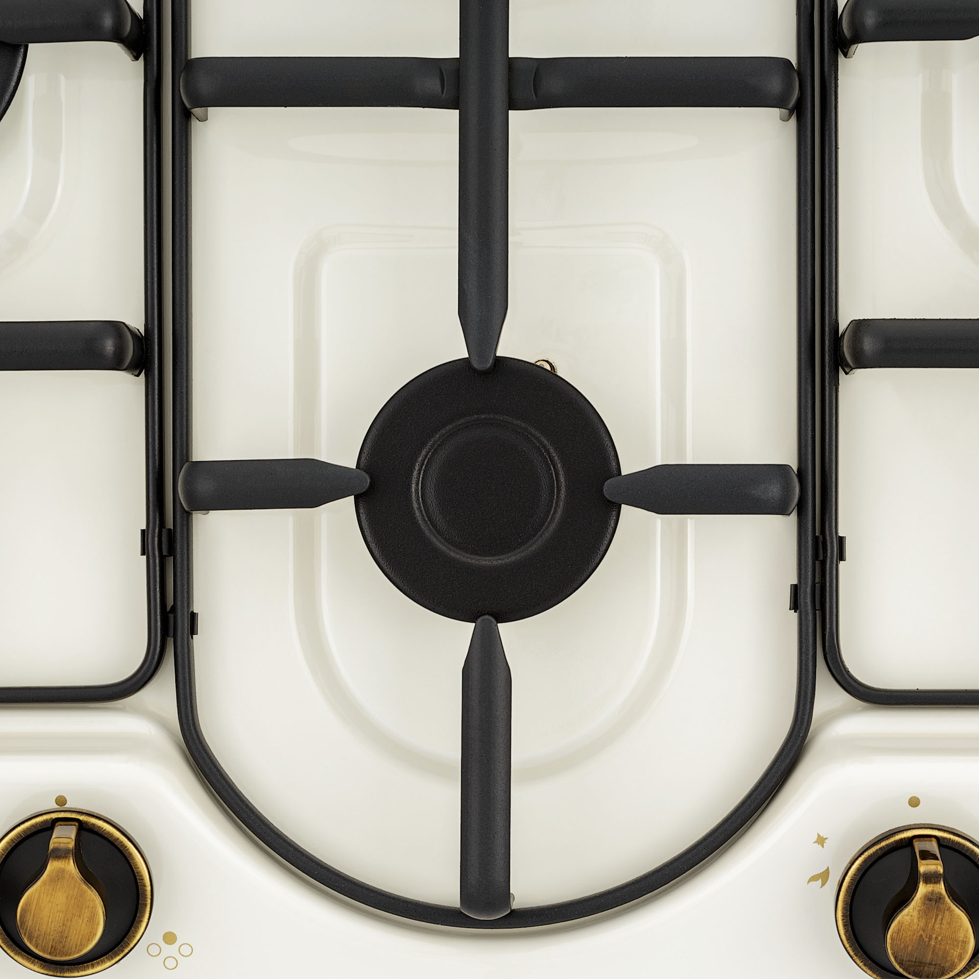 Газовая варочная поверхность на 60 см PARTITA выполнена в цвете нержавеющая сталь, который отлично подойдет для современных интерьеров, или же в цветах слоновая кость и антрацит, которые гармонично впишутся в кухни классического стиля. В комплектацию варочной поверхности входят легкие решетки с покрытием Iron+, которые можно мыть в посудомоечной машине.