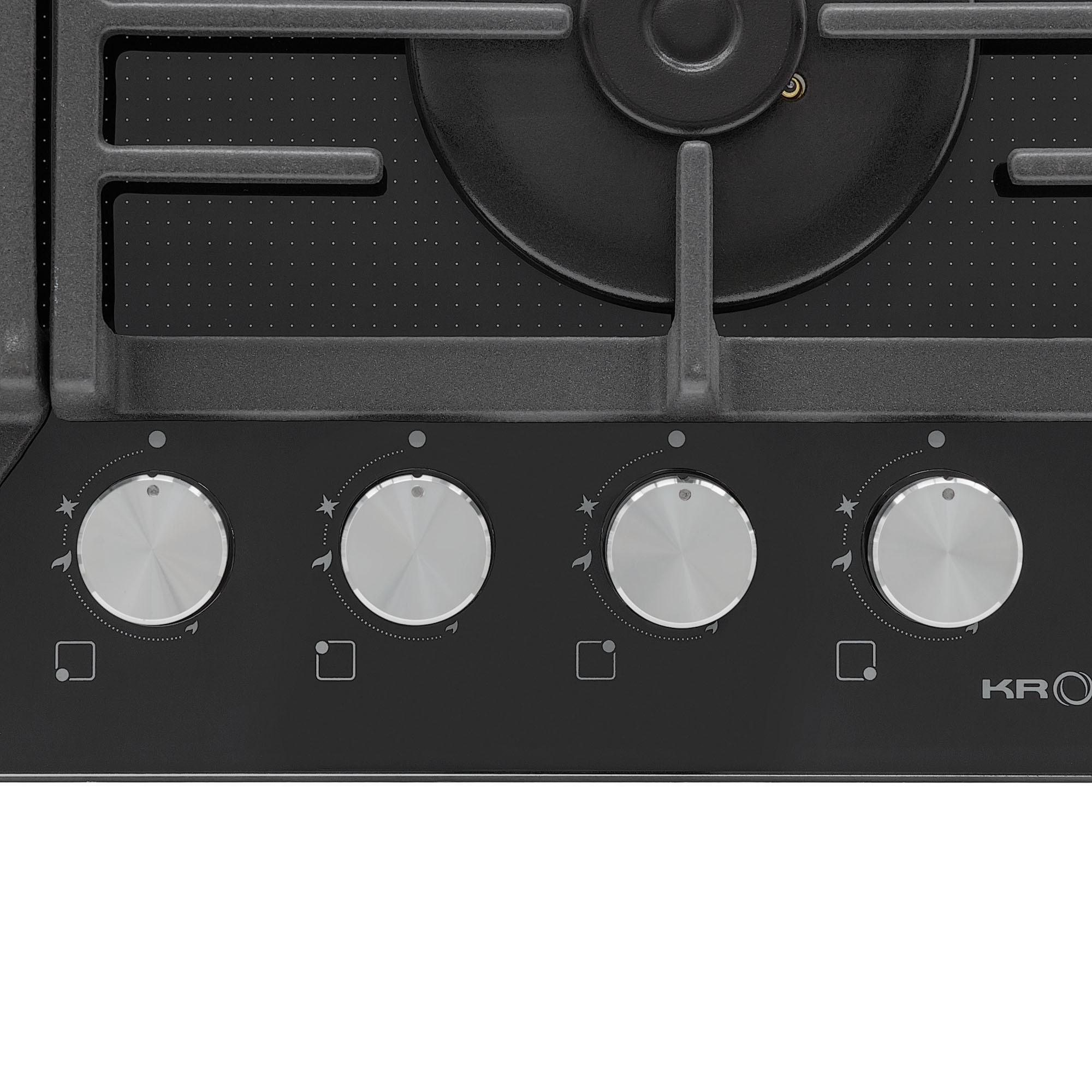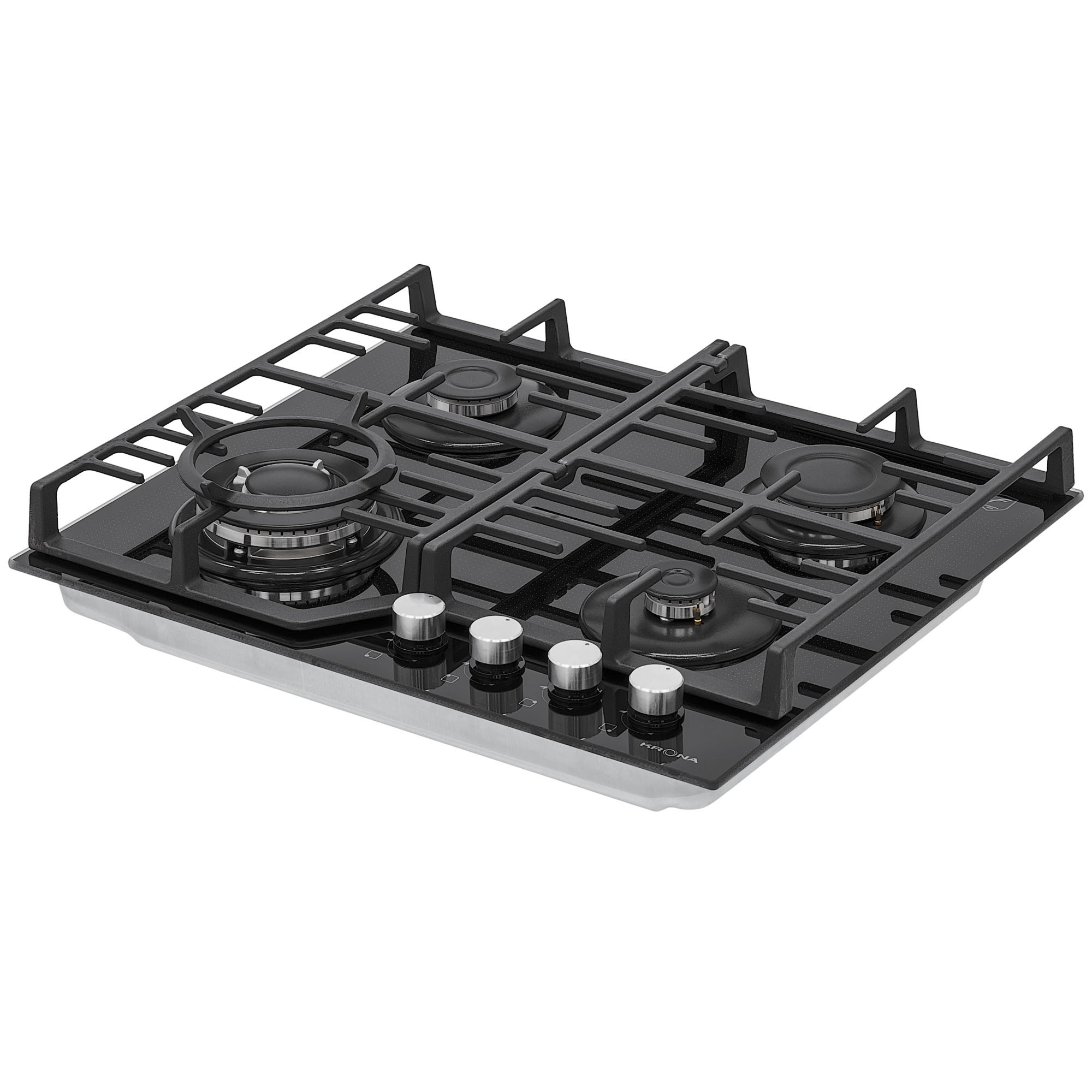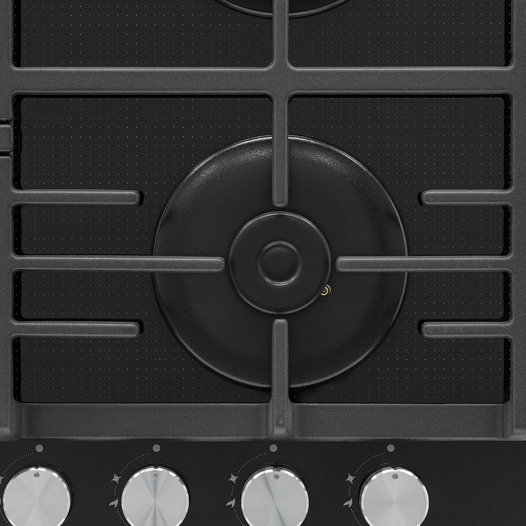Стильная газовая варочная поверхность ARDENTE шириной встраивания 60 см выполнена из прочного закаленного стекла черного цвета. Модель оснащена экспресс-конфоркой с тройным пламенем, 2 надежными чугунными решетками, а также адаптером для посуды со сферическим дном. Для вашего удобства и безопасности предусмотрен автоматический электроподжиг и функция "Газ-контроль", которая остановит подачу газа в случае угасания пламени.