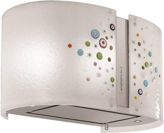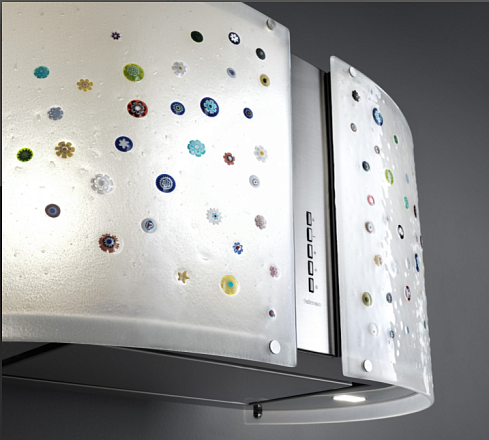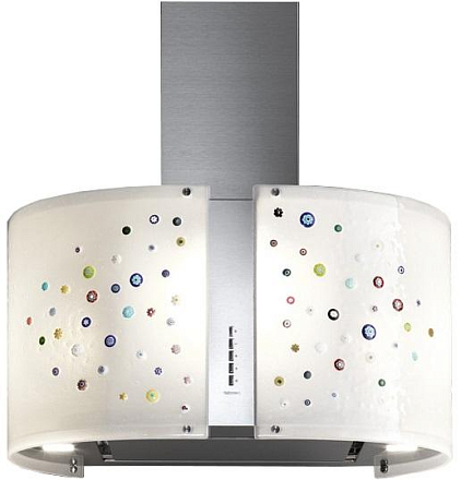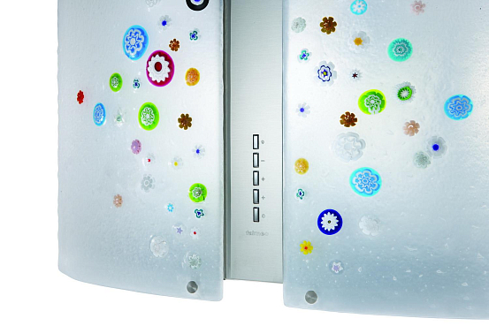 Дизайн. Островная вытяжка Falmec Mirabilia isola 65 VENEZIA Vetro (800) ECP состоит из двух предметов: корпуса, изготовленного из высокосортной нержавеющей стали, и стеклянного колпака расцветки Venezia. Регулируемая подсветка создает в помещении атмосферу спокойствия и уюта.