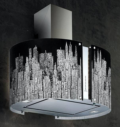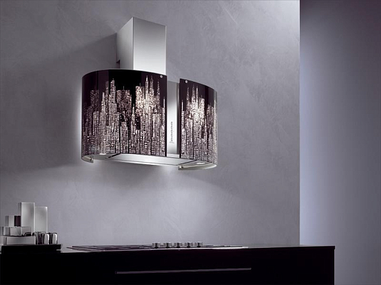 Дизайн. Настенная вытяжка Falmec Mirabilia 67 MANHATTAN Vetro (800) ECP выполнена из высокосортной нержавеющей стали AISI 304 и декорирована стеклянным колпаком Manhattan. Фактура корпуса Scotch Brite гармонично сочетается с дизайном клавиш управления. Модель выполнена в стиле хай-тек.
