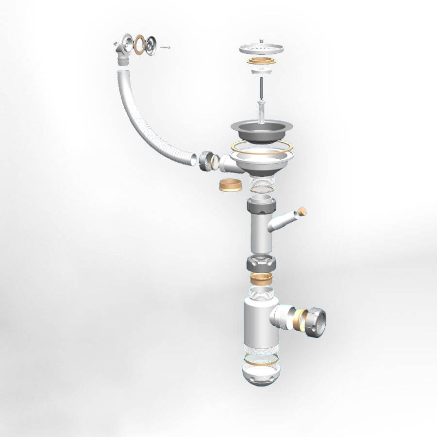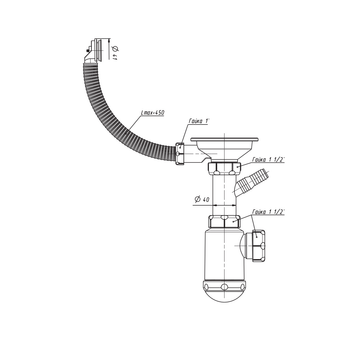 Сифон для кухонных моек с диаметром сливного отверстия 90мм, бутылочного типа. С разборным выпуском,нержавеющей решеткой, отводом для бытовой техники,с круглым переливом для композитных моек. Выход для подключения к канализации 40мм.