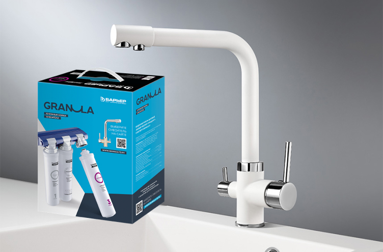 Оптимальный комплект Granula: смеситель и фильтр Барьер. Два крана для питьевой и проточной воды, 360° вращение, высокий излив и два рычага управления. В комплекте все для установки. Насладитесь чистой водой, избавившись от хлора, металлов и примесей. Обеспечьте своему дому здоровье и комфорт!