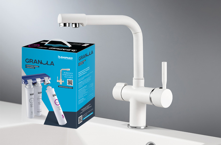 Оптимальный комплект Granula: смеситель и фильтр Барьер. Два крана для питьевой и проточной воды, 360° вращение, высокий излив и два рычага управления. В комплекте все для установки. Насладитесь чистой водой, избавившись от хлора, металлов и примесей. Обеспечьте своему дому здоровье и комфорт!