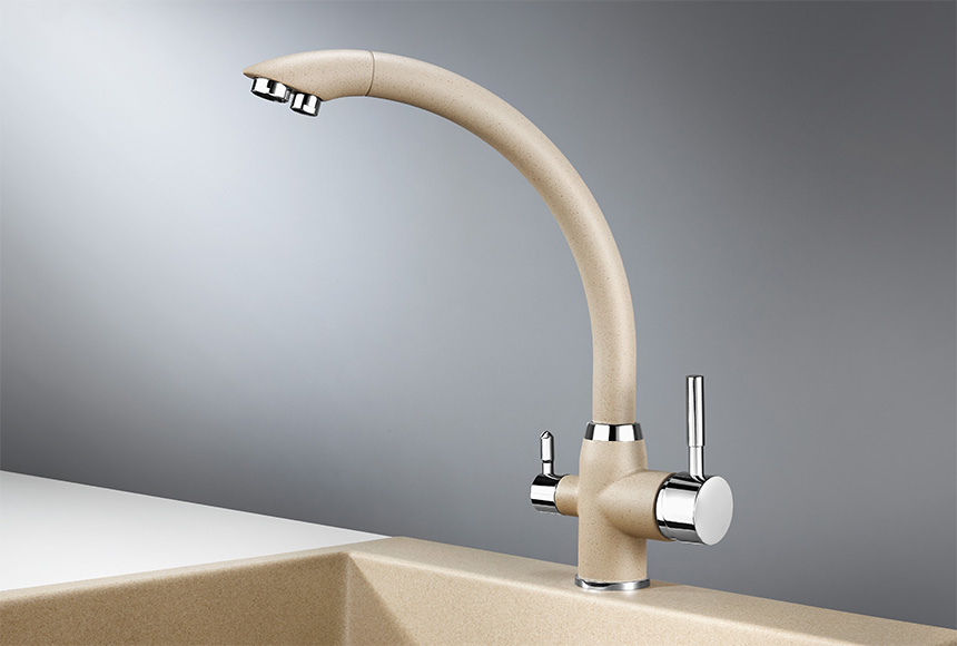 Смеситель для кухонной мойки Granula 2167 изготовлен из высококачественного материала. Латунный корпус обеспечивает длительный срок службы. При этом высокий излив позволяет мыть как мелкую, так и крупногабаритную посуду. Двухрычажная модель смесителя Granula 2167 выполнена с краном для питьевой воды. Фильтрованная вода подается по отдельной трубке и не смешивается с водопроводной водой. Покупателям предлагаются различные типы смесителей, окрашенные в тон моек Granula и StandART. Все модели смесителей для кухонных моек во всех цветах Вы можете посмотреть и приобрести на нашем сайте или в наших представительствах в регионах. Если у Вас остались вопросы, обращайтесь к нашим консультантам.