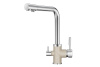 Смеситель для кухонной мойки Granula 3015 изготовлен из высококачественного материала. Латунный корпус обеспечивает длительный срок службы. При этом высокий излив позволяет мыть как мелкую, так и крупногабаритную посуду. Двухрычажная модель смесителя Granula 3015 выполнена с краном для питьевой воды. Фильтрованная вода подается по отдельной трубке и не смешивается с водопроводной водой. Покупателям предлагаются различные типы смесителей, окрашенные в тон моек Granula и StandART.Все модели смесителей для кухонных моек во всех цветах Вы можете посмотреть и приобрести на нашем сайте или в наших представительствах в регионах.Если у Вас остались вопросы, обращайтесь к нашим консультантам