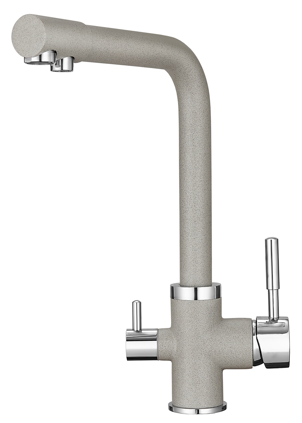 Смеситель для кухонной мойки Granula 2015 изготовлен из высококачественного материала. Латунный корпус обеспечивает длительный срок службы. При этом высокий излив позволяет мыть как мелкую, так и крупногабаритную посуду. Двухрычажная модель смесителя Granula 2015 выполнена с краном для питьевой воды. Фильтрованная вода подается по отдельной трубке и не смешивается с водопроводной водой. Покупателям предлагаются различные типы смесителей, окрашенные в тон моек Granula и StandART. Все модели смесителей для кухонных моек во всех цветах Вы можете посмотреть и приобрести на нашем сайте или в наших представительствах в регионах.Если у Вас остались вопросы, обращайтесь к нашим консультантам