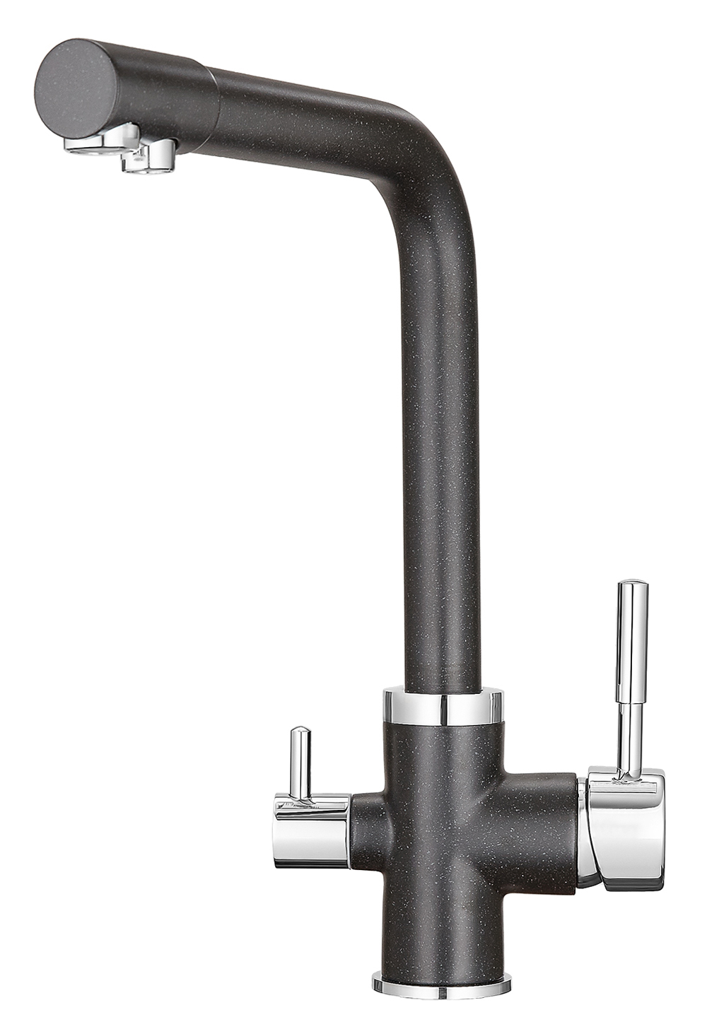 Смеситель для кухонной мойки Granula 2015 изготовлен из высококачественного материала. Латунный корпус обеспечивает длительный срок службы. При этом высокий излив позволяет мыть как мелкую, так и крупногабаритную посуду. Двухрычажная модель смесителя Granula 2015 выполнена с краном для питьевой воды. Фильтрованная вода подается по отдельной трубке и не смешивается с водопроводной водой. Покупателям предлагаются различные типы смесителей, окрашенные в тон моек Granula и StandART. Все модели смесителей для кухонных моек во всех цветах Вы можете посмотреть и приобрести на нашем сайте или в наших представительствах в регионах.Если у Вас остались вопросы, обращайтесь к нашим консультантам