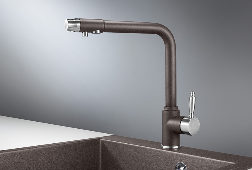 Смеситель для кухонной мойки Granula 2301 изготовлен из высококачественного инновационного материала. Корпус из нержавеющей стали обеспечивает длительный срок службы. При этом высокий излив позволяет мыть как мелкую, так и крупногабаритную посуду. Модель смесителя Granula 2301 выполнена с краном для питьевой воды. Особенность смесителя Granula 2301, то что переключатель на фильтрованную воду находится на изливе смесителя, это удобно и практично. Фильтрованная вода подается по отдельной трубке и не смешивается с водопроводной водой. Покупателям предлагаются различные типы смесителей, окрашенные в тон моек Granula и StandART. Все модели смесителей для кухонных моек во всех цветах Вы можете посмотреть и приобрести на нашем сайте или в наших представительствах в регионах.Если у Вас остались вопросы, обращайтесь к нашим консультантам