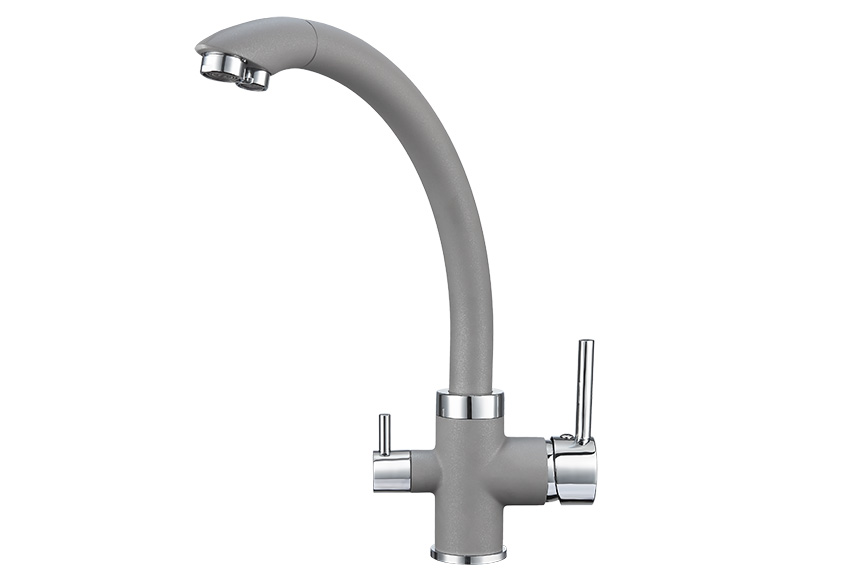 Смеситель для кухонной мойки Granula 2167 изготовлен из высококачественного материала. Латунный корпус обеспечивает длительный срок службы. При этом высокий излив позволяет мыть как мелкую, так и крупногабаритную посуду. Двухрычажная модель смесителя Granula 2167 выполнена с краном для питьевой воды. Фильтрованная вода подается по отдельной трубке и не смешивается с водопроводной водой. Покупателям предлагаются различные типы смесителей, окрашенные в тон моек Granula и StandART. Все модели смесителей для кухонных моек во всех цветах Вы можете посмотреть и приобрести на нашем сайте или в наших представительствах в регионах. Если у Вас остались вопросы, обращайтесь к нашим консультантам.