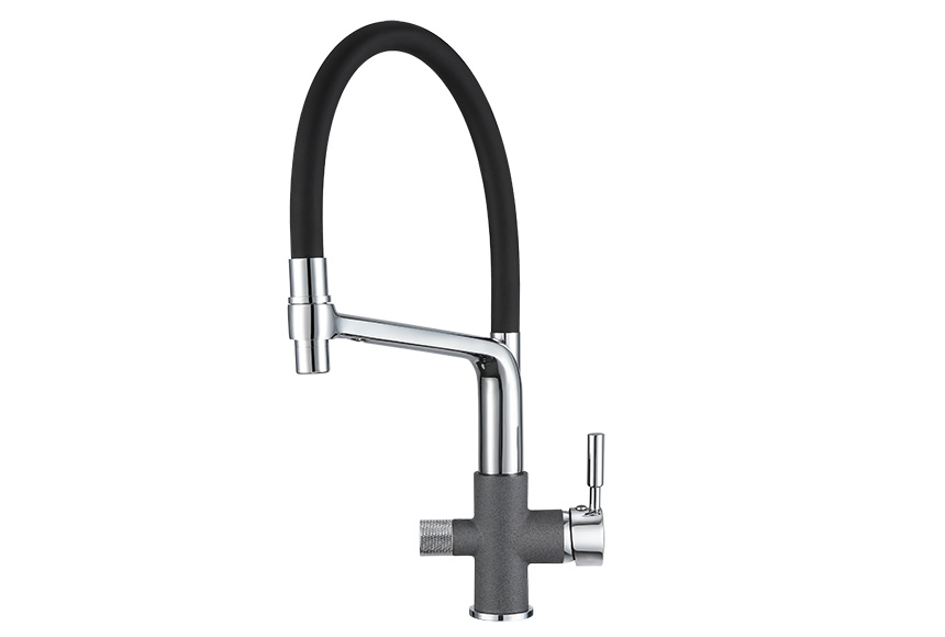 Смеситель для кухонной мойки Granula 0075 изготовлен из высококачественного материала. Латунный корпус обеспечивает длительный срок службы. При этом высокий излив с гибким шлангом позволяет мыть как мелкую, так и крупногабаритную посуду. Двухрычажная модель смесителя Granula 0075 выполнена с краном для питьевой воды. Фильтрованная вода подается по отдельной трубке и не смешивается с водопроводной водой.