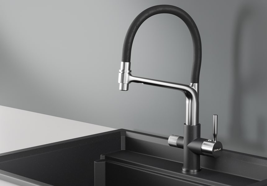 Смеситель для кухонной мойки Granula 0075 изготовлен из высококачественного материала. Латунный корпус обеспечивает длительный срок службы. При этом высокий излив с гибким шлангом позволяет мыть как мелкую, так и крупногабаритную посуду. Двухрычажная модель смесителя Granula 0075 выполнена с краном для питьевой воды. Фильтрованная вода подается по отдельной трубке и не смешивается с водопроводной водой.
