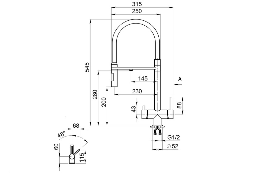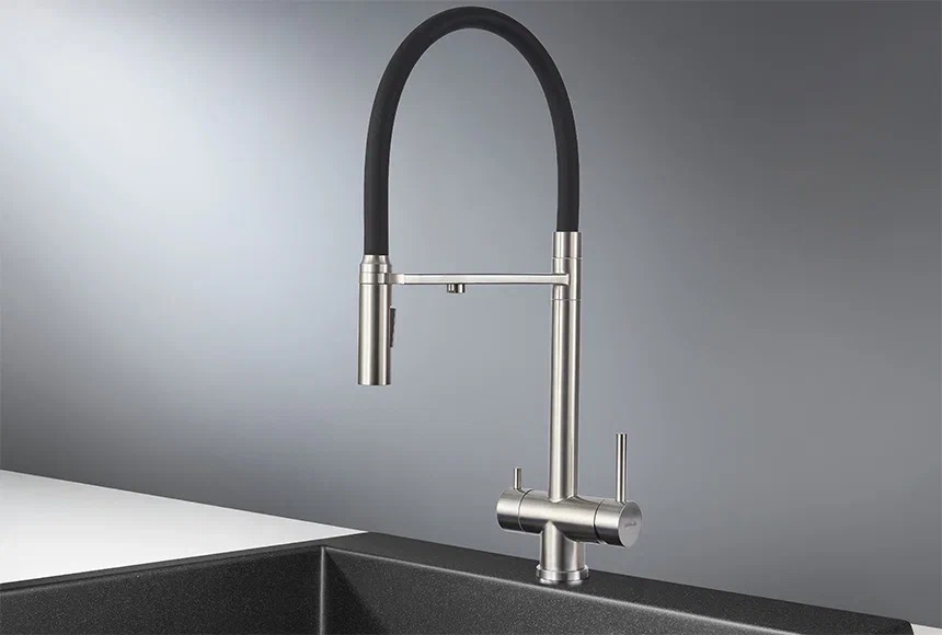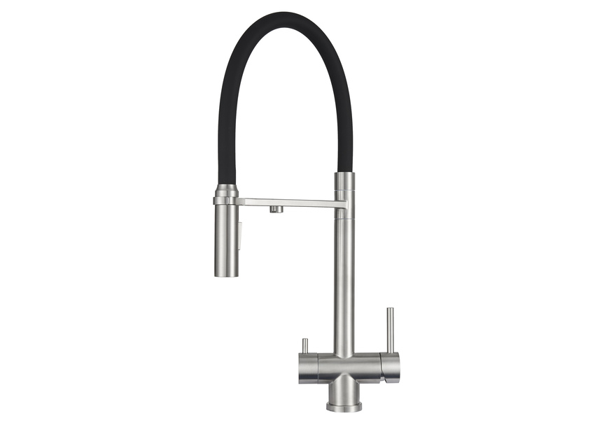 Смеситель Granula выполнен из специальной пищевой нержавеющей стали AISI 304. Имеет высокий излив со шлангом с двумя режимами – душ и вода. Шланг для удобства может отсоединяться и содержит внутри капроновую оплетку, что обеспечивает высокий срок эксплуатации. Теперь вы сможете не только удобно ополаскивать мойку, но и легко справляться как с мелкой, так и с крупногабаритной посудой! В комплекте идет переходник для подключения к любым типам фильтров. Имеет отдельный кран и отверстие для фильтрованной воды. Универсальный цвет смесителя позволяет стильно сочетаться с любыми мойками. Упакован в коробку с ложементом – мягкой подложкой для безопасной транспортировки.