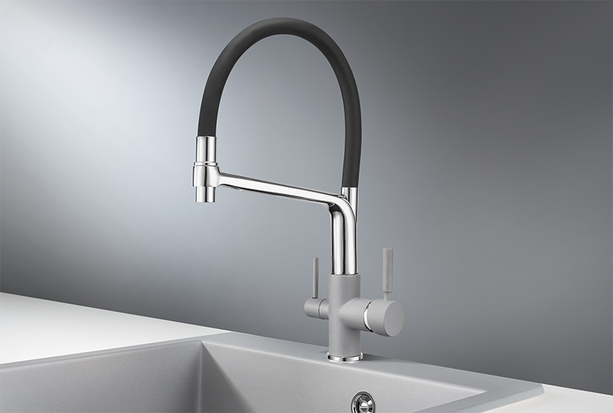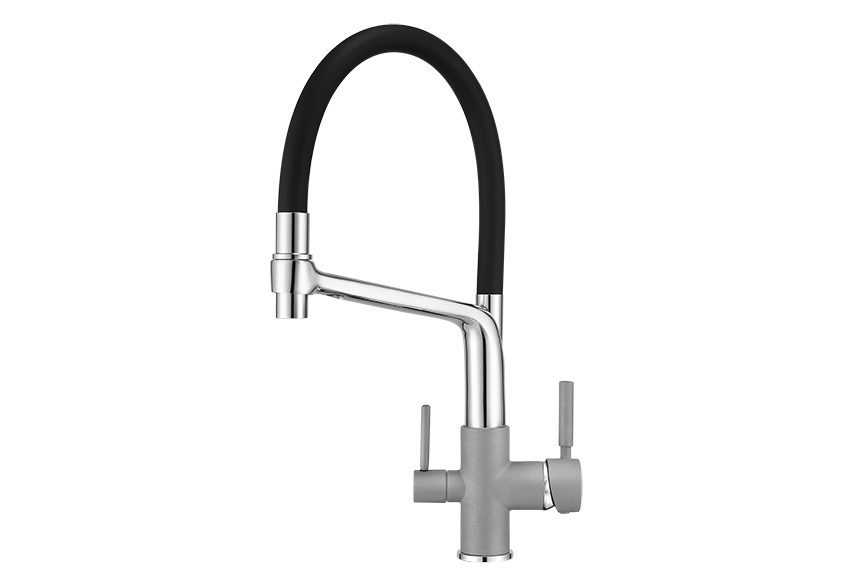 Смеситель для кухонной мойки Granula 0083 изготовлен из высококачественного материала. Латунный корпус обеспечивает длительный срок службы. При этом высокий излив с гибким шлангом позволяет мыть как мелкую, так и крупногабаритную посуду. Двухрычажная модель смесителя Granula 0083 выполнена с краном для питьевой воды. Фильтрованная вода подается по отдельной трубке и не смешивается с водопроводной водой.