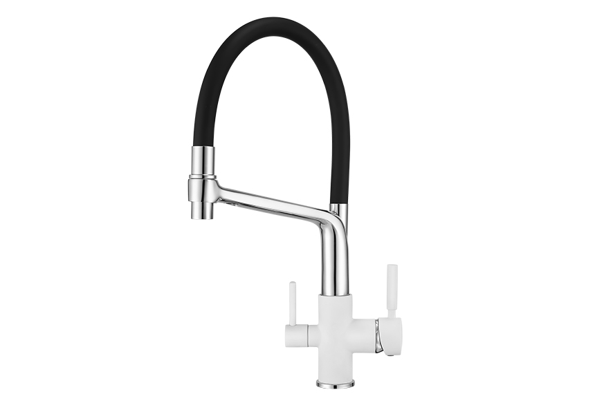 Смеситель для кухонной мойки Granula 0083 изготовлен из высококачественного материала. Латунный корпус обеспечивает длительный срок службы. При этом высокий излив с гибким шлангом позволяет мыть как мелкую, так и крупногабаритную посуду. Двухрычажная модель смесителя Granula 0083 выполнена с краном для питьевой воды. Фильтрованная вода подается по отдельной трубке и не смешивается с водопроводной водой.